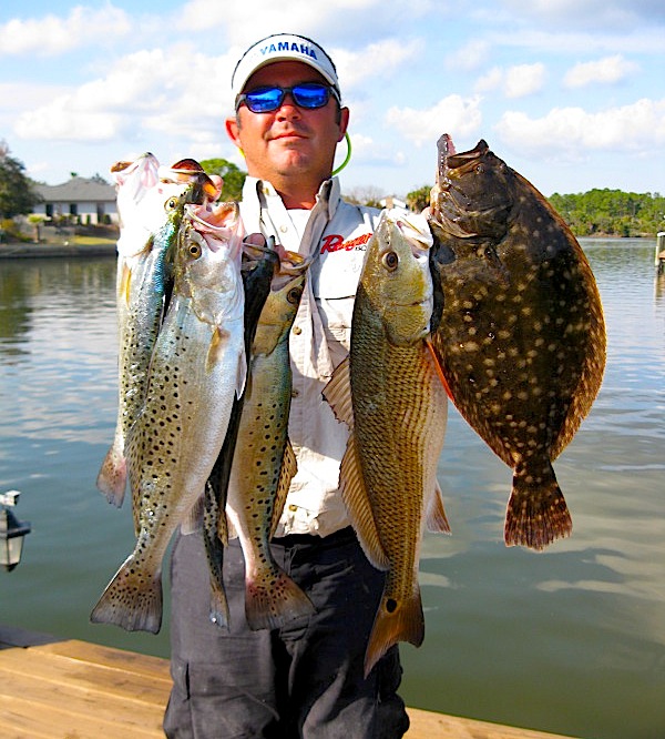 Palm Coast Mixed Bag FS Member mudbuggy shows off a nice trout, redfish, flounder mixed bag from near Palm coast.
