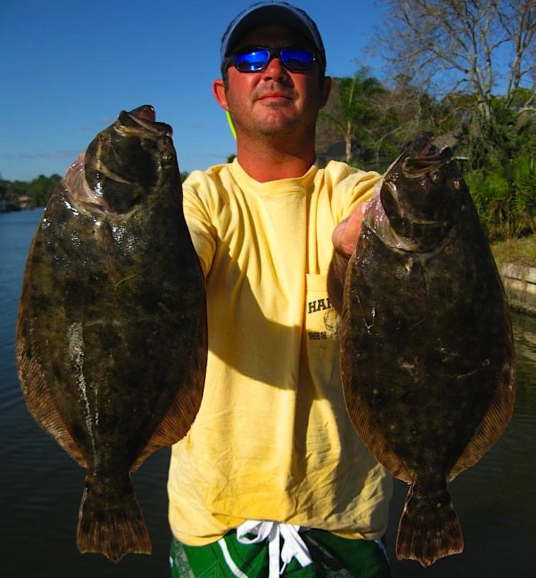 Flounder Double FS Member mudbuggy shows off a nice Flagler County flounder double.
