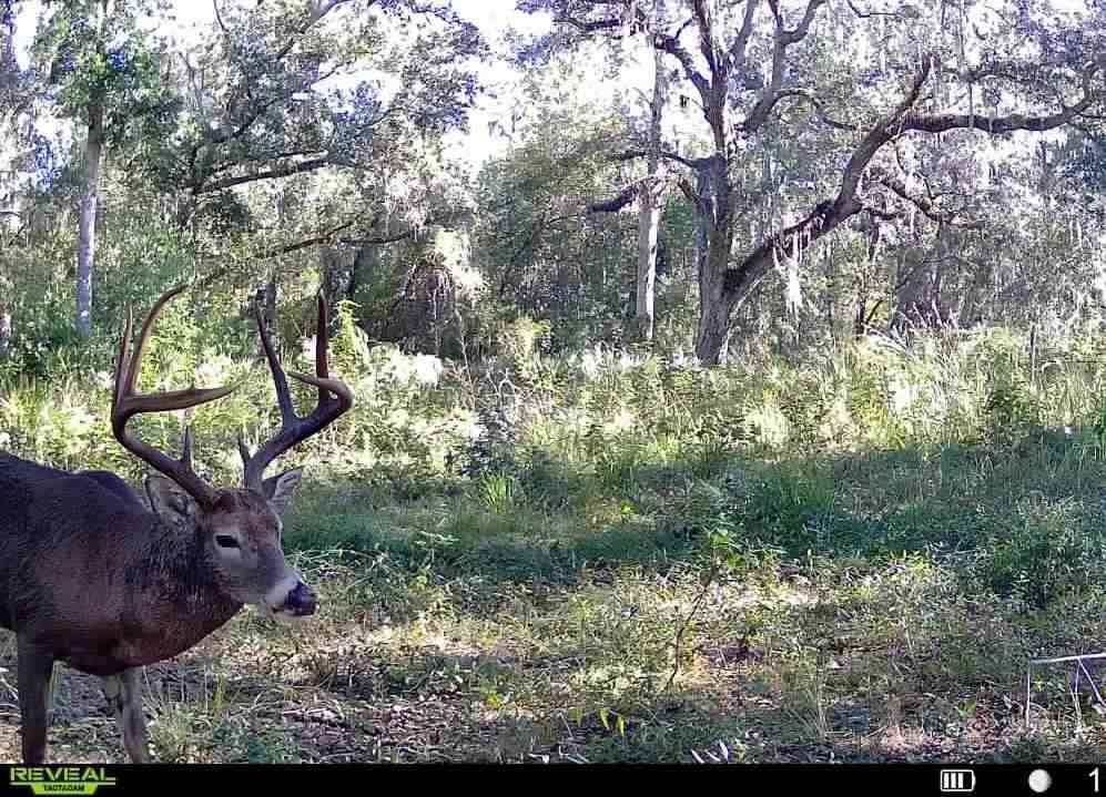 Big buck makes a daylight appearance on one of the writer's trail cams. Trail cams may be operated year-round on most Florida WMAs (always check WMA brochure) but must be labeled with the owner's Go Outdoors Florida customer identification number.