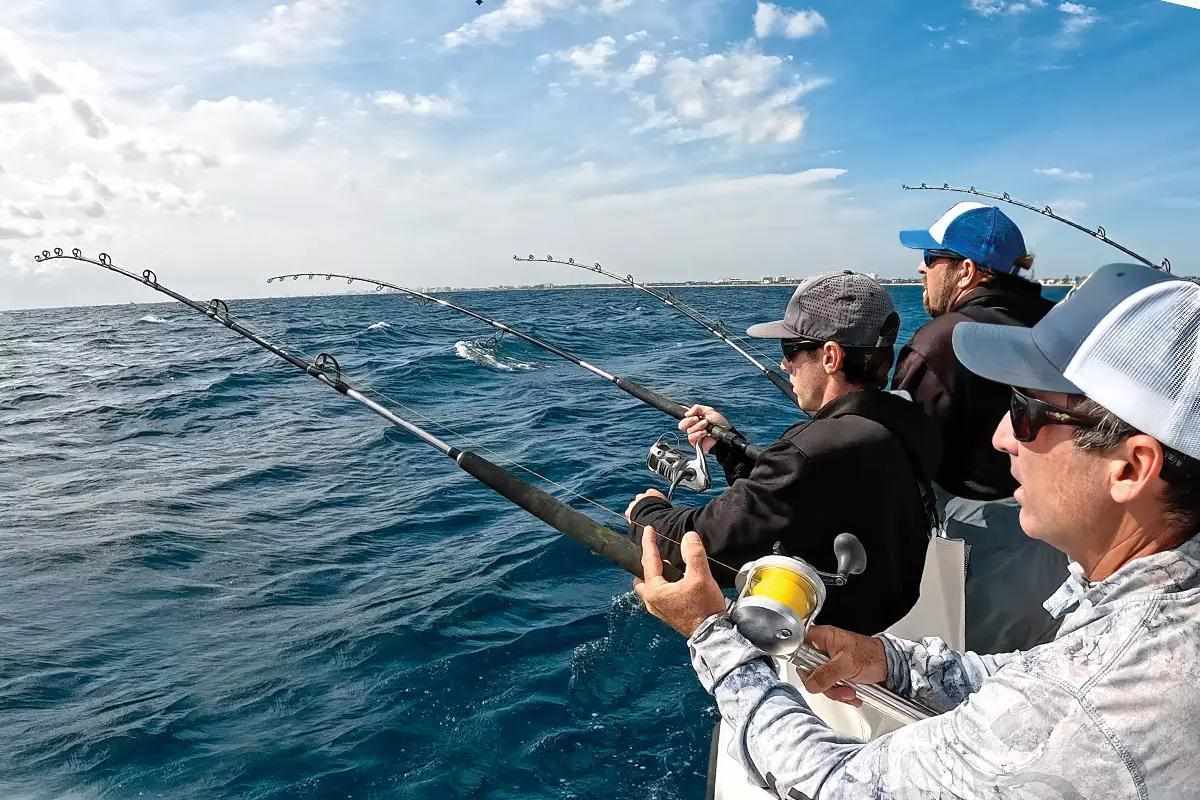 For veteran crews in South Florida sailfish tournaments, multiple hookups are pretty common. Braided line holds up in the event lines become crossed. (Steve Dougherty photo)