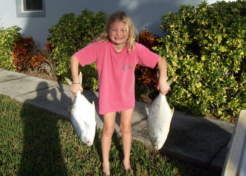 Big Pompano - Little Girl Bella Concannon, 7, helped her father catch these two giant pompano while surf fishing.