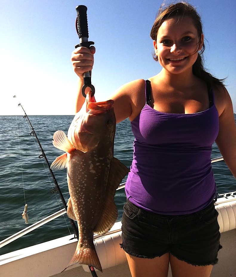 Rachel caught this big red grouper while bottom fishing with a Gulp!