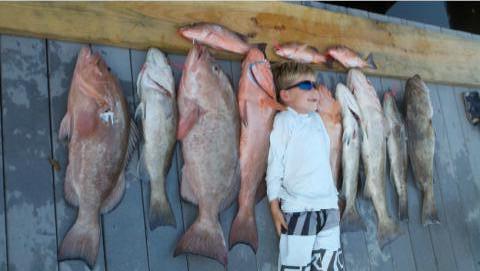 Enough red grouper to satisfy a family feast. Check the regs before heading offshore.